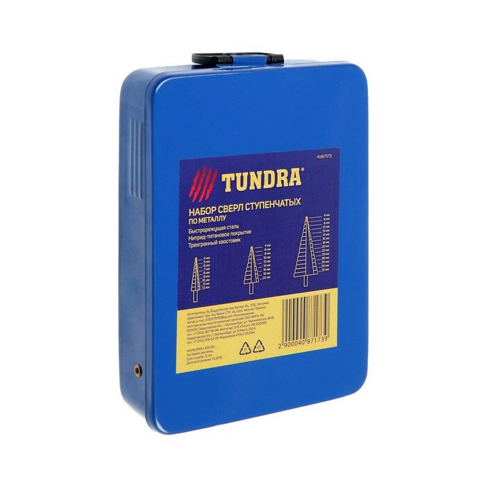 Набор сверл ступенчатых TUNDRA, HSS, TiN, трехгр. хвост., 4-12 мм, 4-20 мм, 4-32 мм, 3 шт.