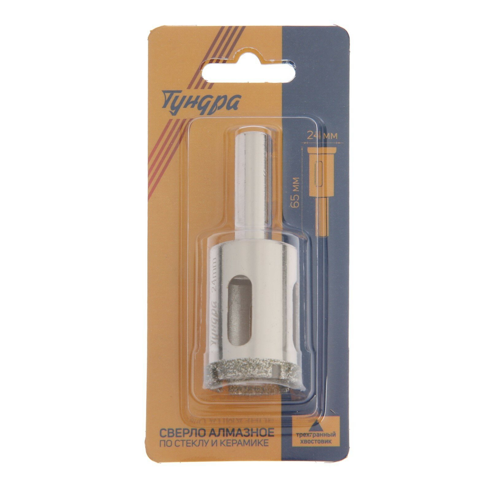 Сверло алмазное по стеклу и керамике тундра, трехгранный хвостовик, 65 х 65 мм