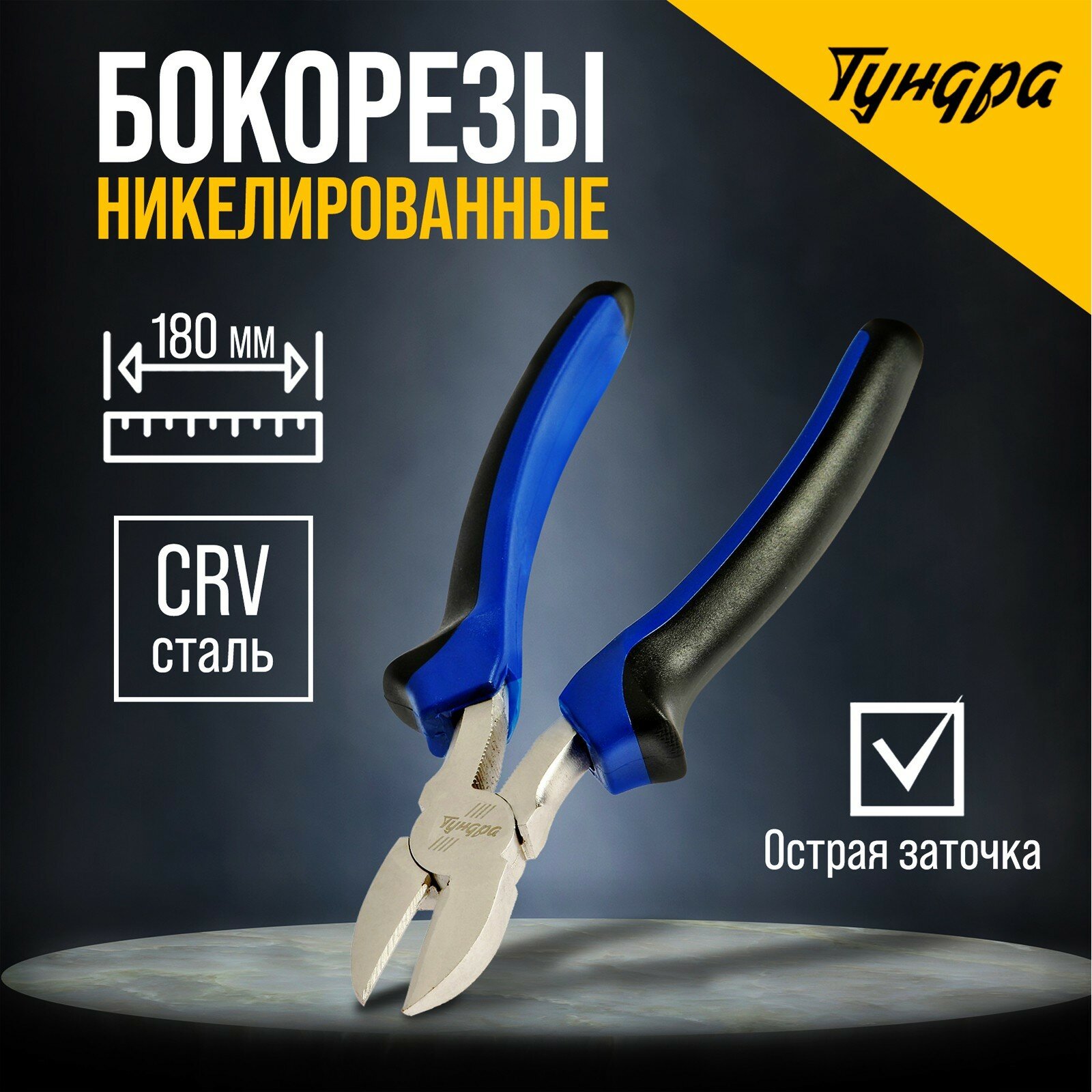 Бокорезы TUNDRA, никелированные, рукоятки 2К, 180 мм