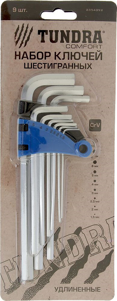 Tundra Набор ключей шестигранных , удлиненных, CrV, 1.5 - 10 мм, 9 шт. 2354392