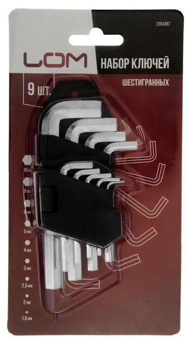 Набор ключей шестигранных LOM, 1.5 - 10 мм, 9 шт. LOM 2354387