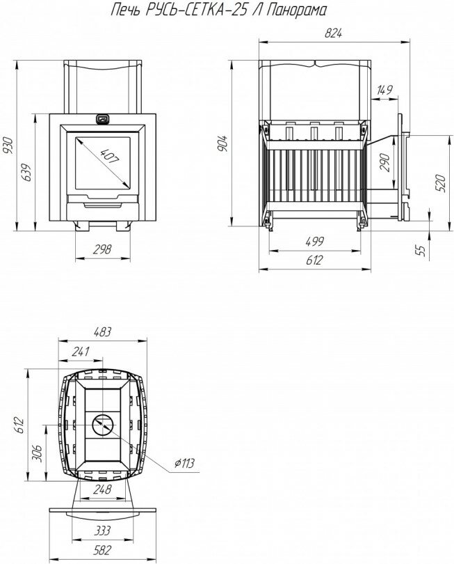 Печь для бани Русь-сетка 25 Л Панорама