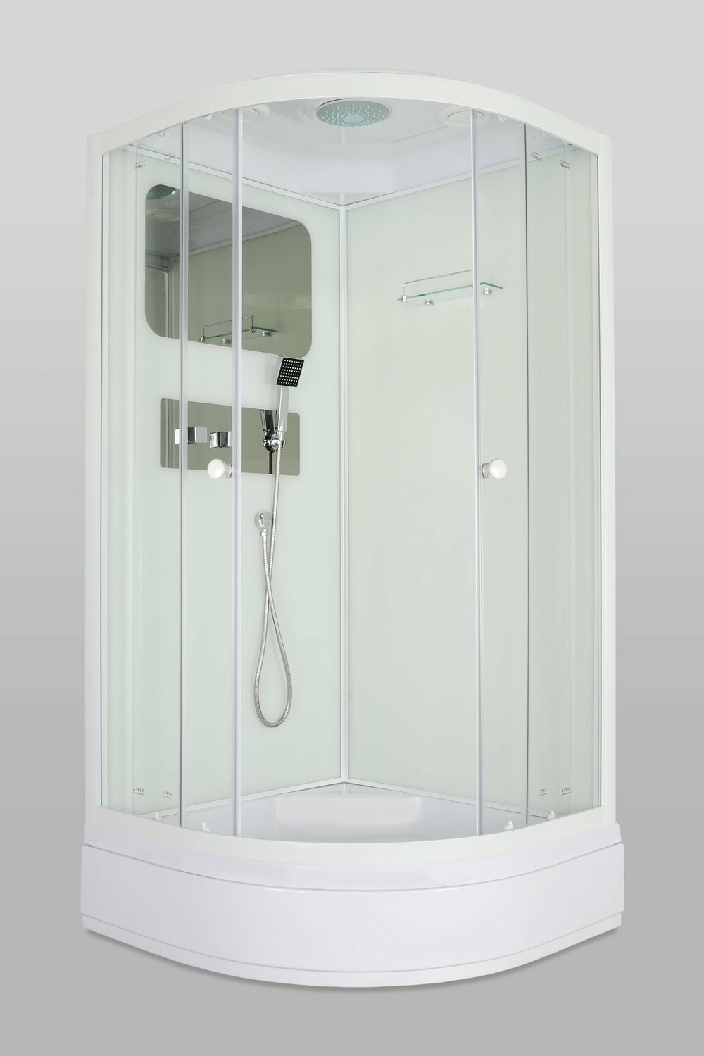 Душевая кабина Parly BMM95 (95x95*215) сред.поддон, проз.перед,, бел.задн.стекла, полочка, зеркало