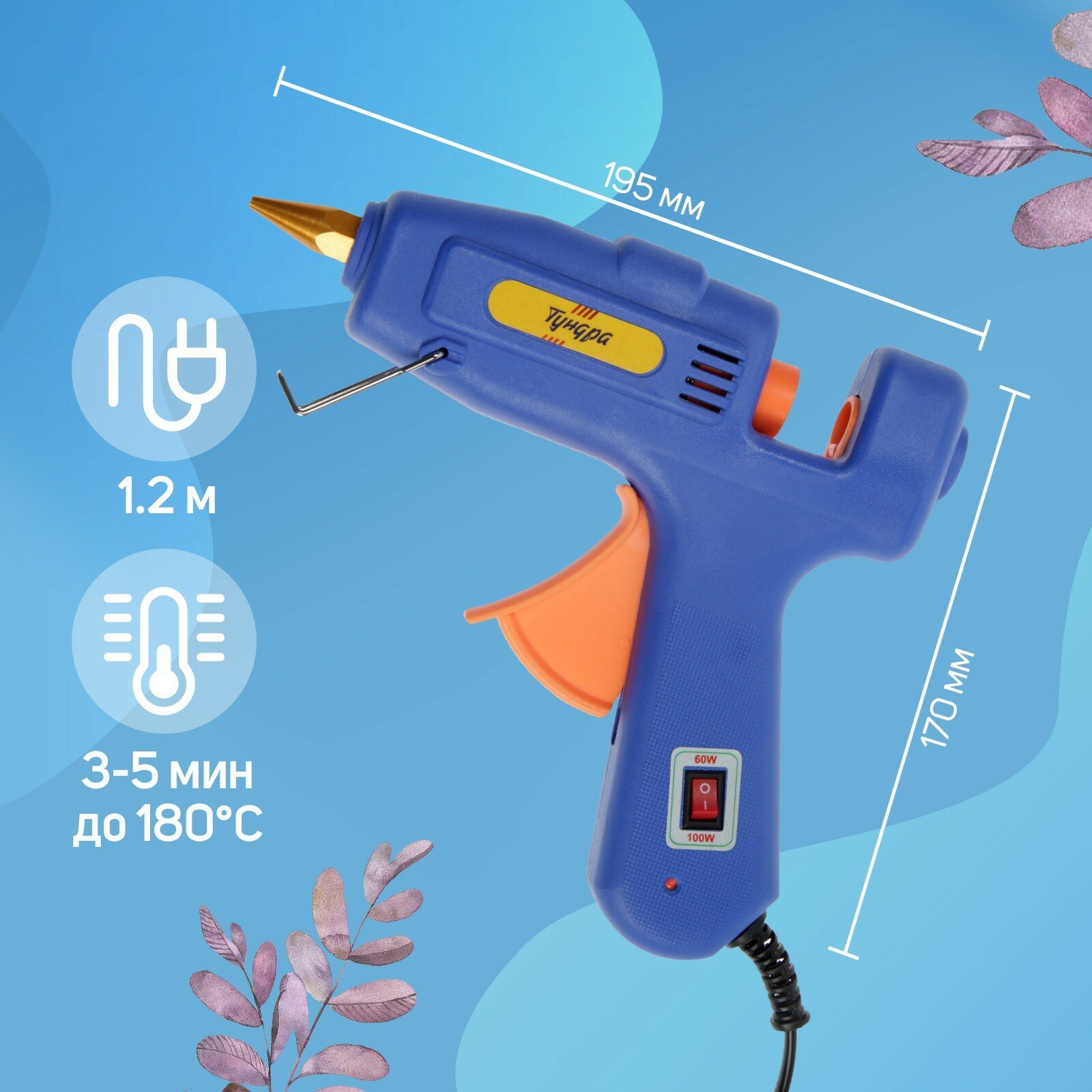 Тундра Клеевой пистолет тундра, переключатель мощности 60/100 Вт, 220 В, антикапля, 11 мм