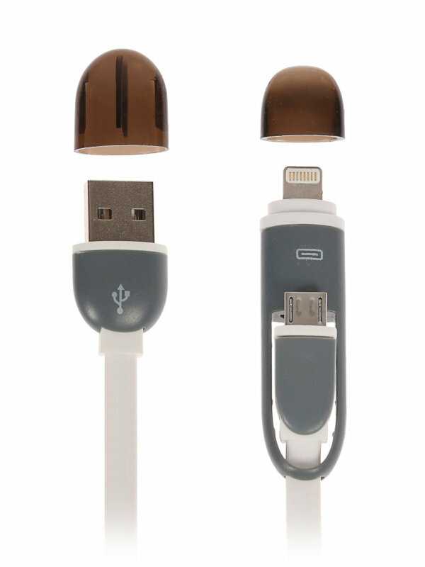 Data-кабели Luazon Home Кабель 2 в 1 LuazON, microUSB/Lightning - USB, 1 А, 0.9 м, плоский, белый