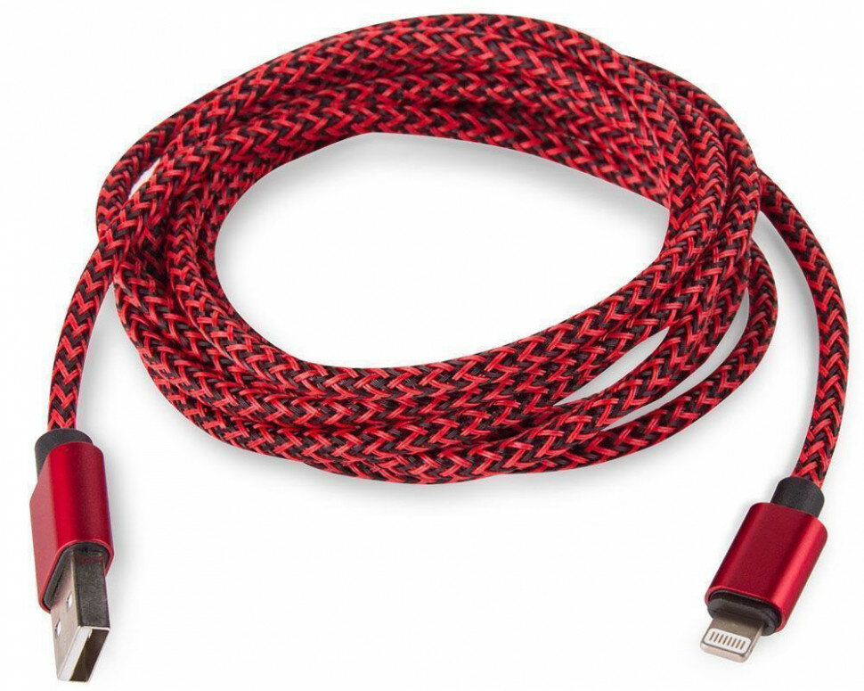 Luazon Home Кабель LuazON, Lightning - USB, 1 А, 1 м, оплётка нейлон, красный