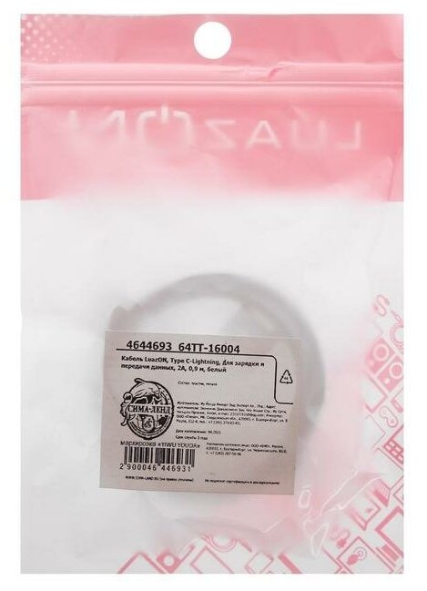 Кабель LuazON, Lightning - Type C, 2 А, 1 м, для зарядки и синхронизации, белый Luazon Home 4644693 .