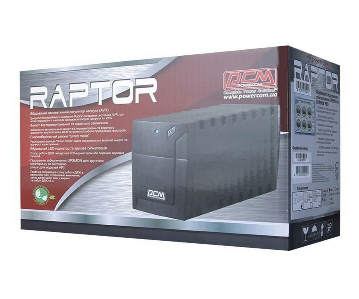 ИБП Powercom Raptor 800 VA, EURO, розеток - 3 (RPT-800AP EURO)