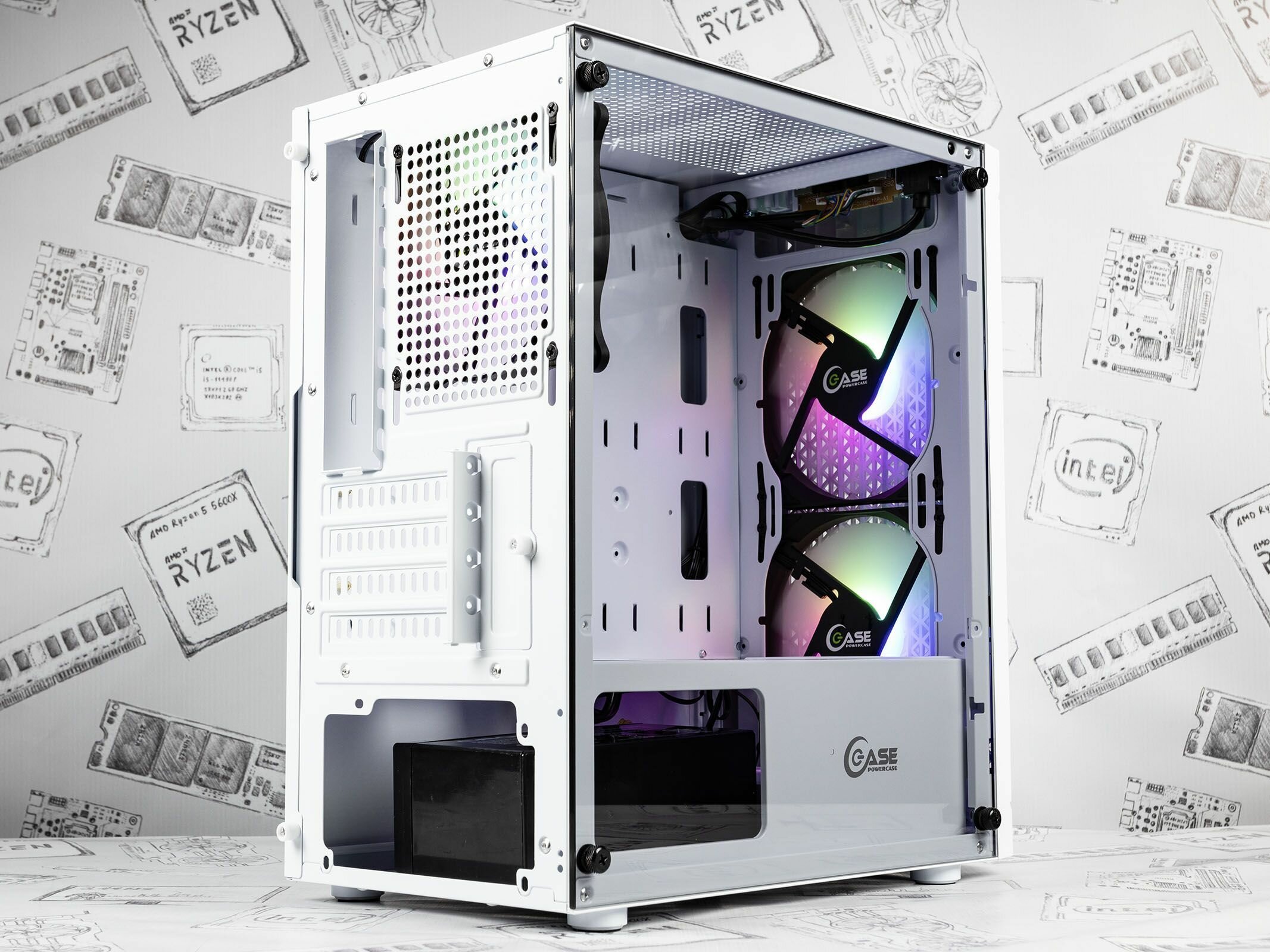 | Плюсы: | Компактный, полностью белый (Кроме проводов от кулеров и передней панели, но они полностью чёрные)