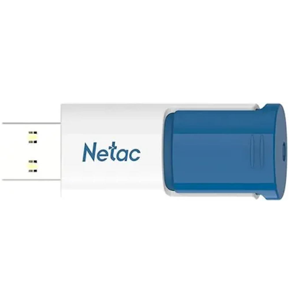 Память Flash USB 128 Gb Netac U182 Blue (NT03U182N-128G-30BL), USB3.0, сдвижной корпус, пластиковая бело-синяя