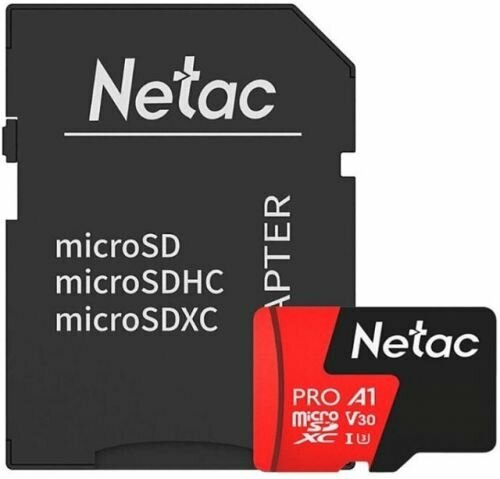 Карта памяти Netac microSDXC 128 ГБ Class 10, V30, A1, UHS-I, R 100 МБ/с, 1 шт., черный