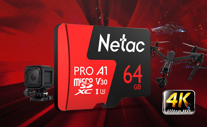 MicroSDHC 64Gb Netac P500 Extreme Pro A1 V10 Class 10 Uhs-i (u1), Nt02p500pro-064g-r, R100Mb/s, SD а .