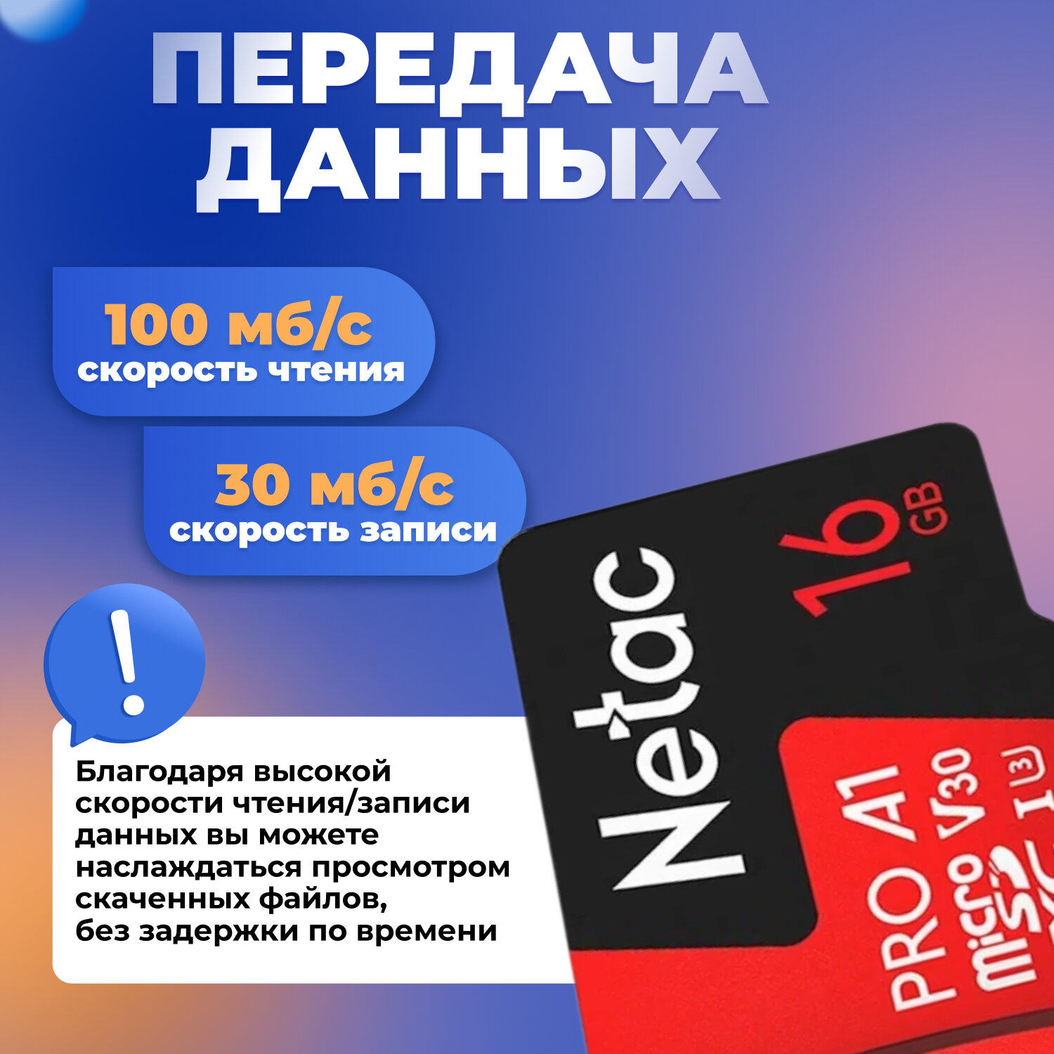 MicroSDHC 64Gb Netac P500 Extreme Pro A1 V10 Class 10 Uhs-i (u1), Nt02p500pro-064g-r, R100Mb/s, SD а .