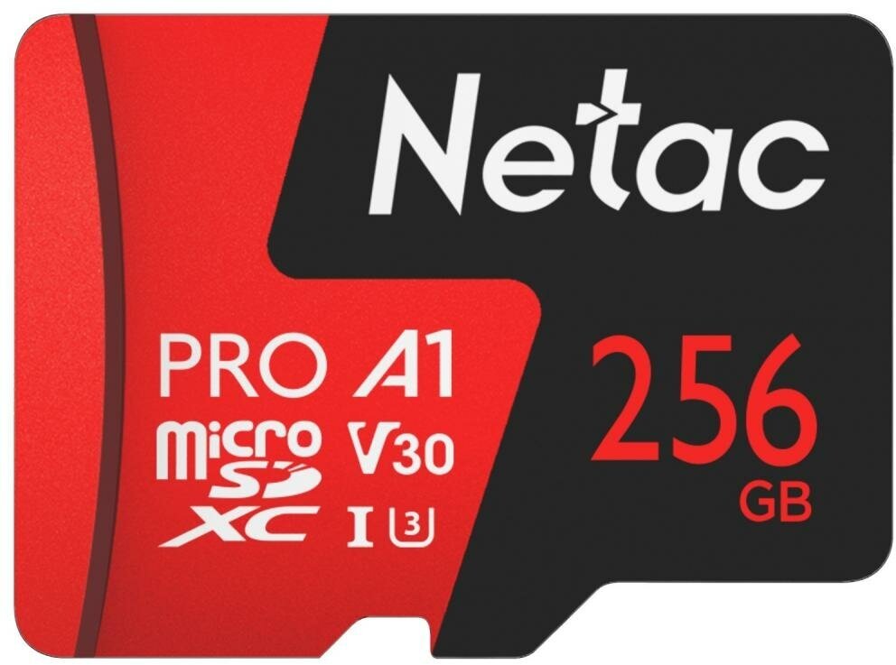 Netac P500 Extreme PRO 256GB MicroSDXC V30/A1/C10 up to 100MB/s, retail pack with SD Adapter
