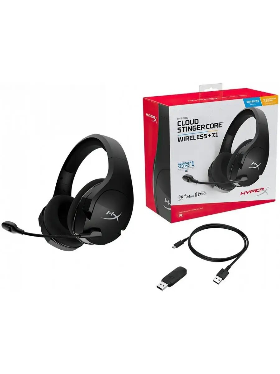 Гарнитура игровая HYPERX Cloud Stinger Core 7.1, для компьютера и игровых консолей, мониторные, радио, черный [4p4f0aa]