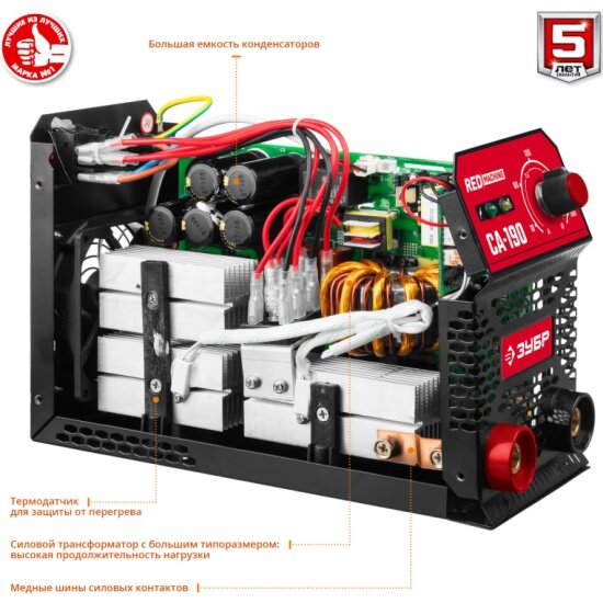 ЗУБР ММА, 190 А, RED MACHINE, сварочный аппарат инверторный, макс. электрод O 5.0 мм (СА-190)