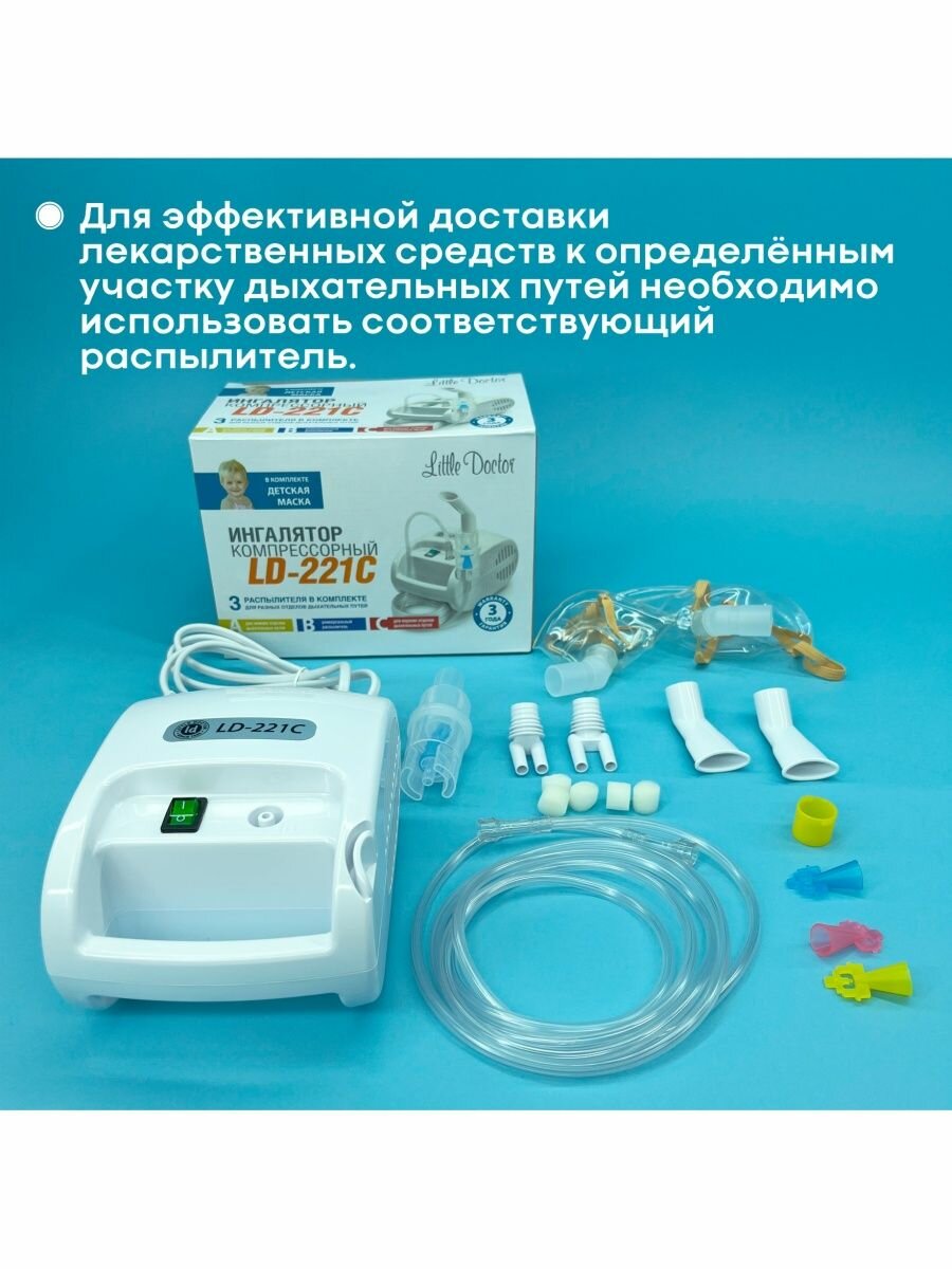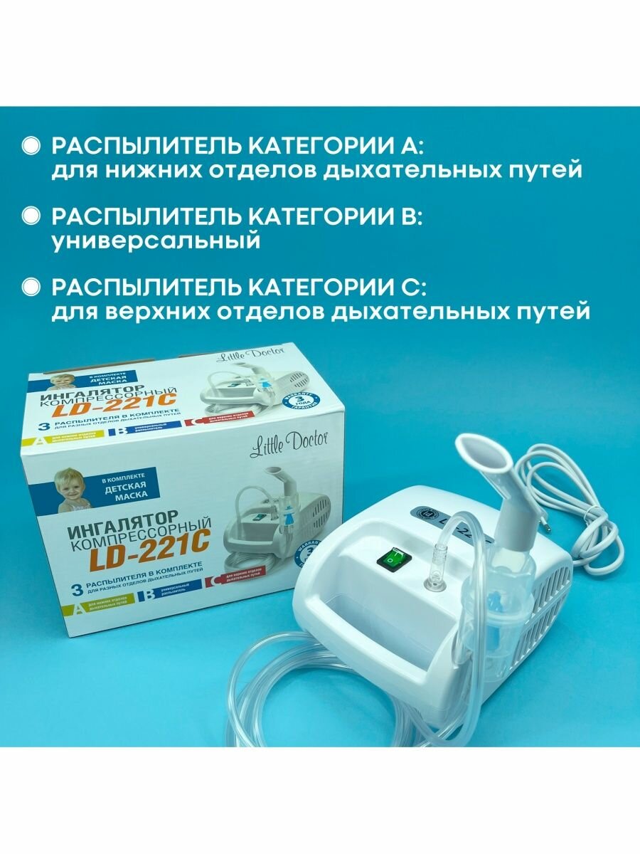 Ингалятор Little Doctor LD-221С, 60 Вт, компрессорный, 3 распылителя, 10 мл, 0.3-0.5 мл/мин