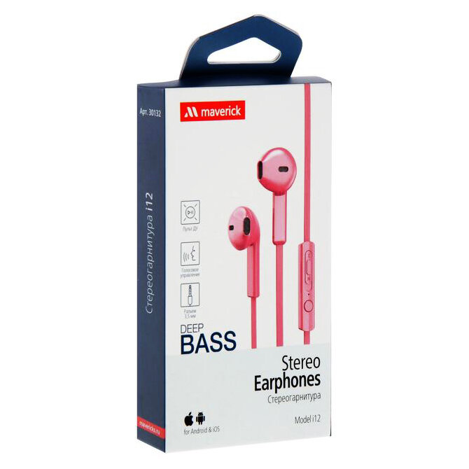 Купить Проводные наушники Maverick Deep Bass i12, розовые