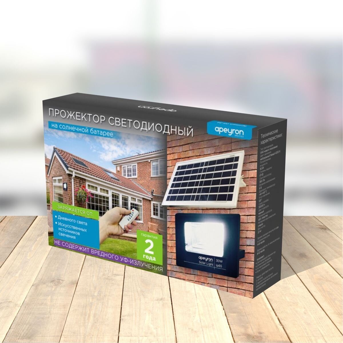 Светодиодный прожектор Apeyron на солнечной батарее, светильник с датчиком движения и света, 30 Вт, 4200 К