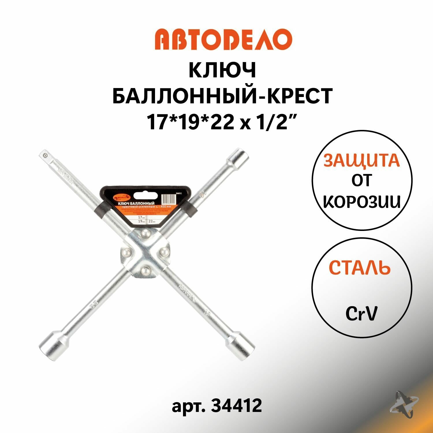 Купить Ключ Баллонный-Крест, 17x19x22x1/2, Усиленный Автоdело 34412 АвтоDело арт. 34412