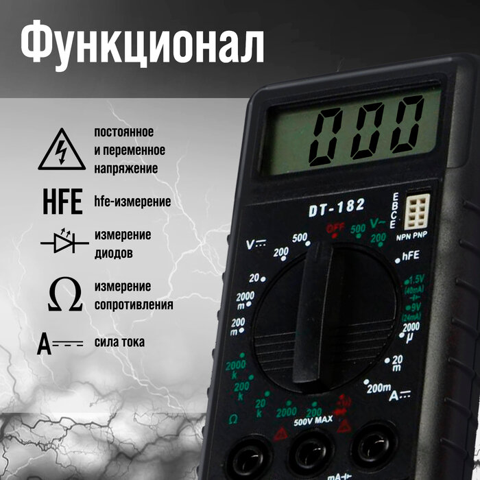 Мультиметр тундра mini, DT-182, ACV/DCV, DCA, 200-200MΩ, проверка батареек 1.5 и 9V