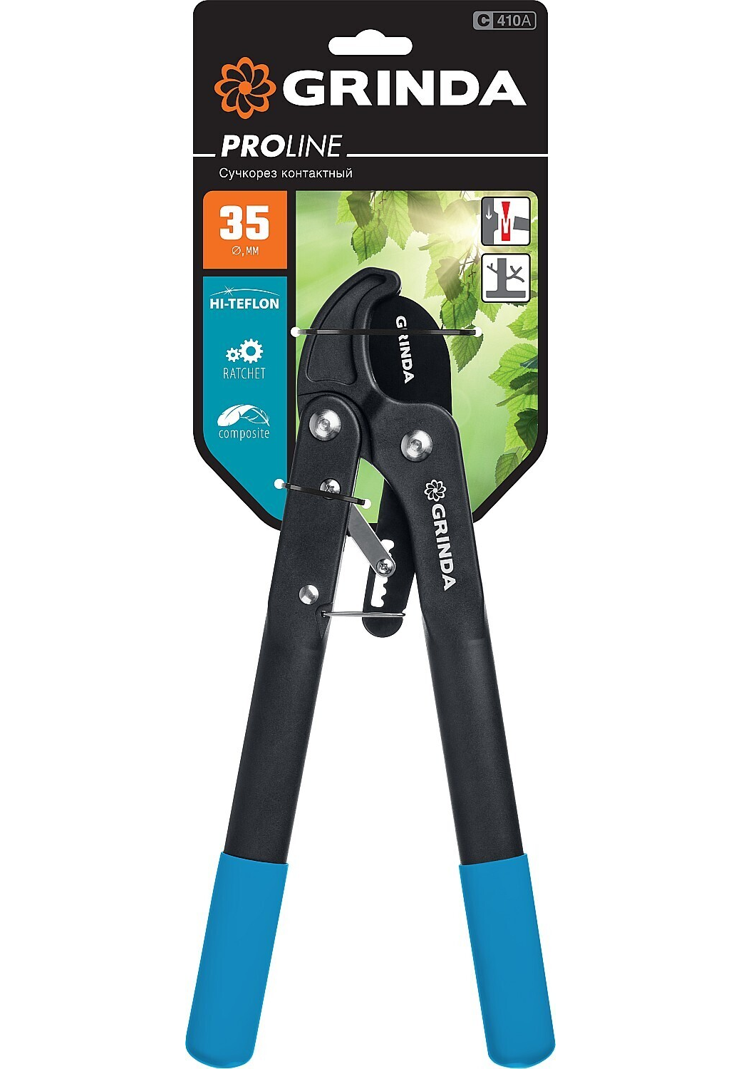 C-410A контактный сучкорез с композитными рукоятками, с храповым механизмом, GRINDA