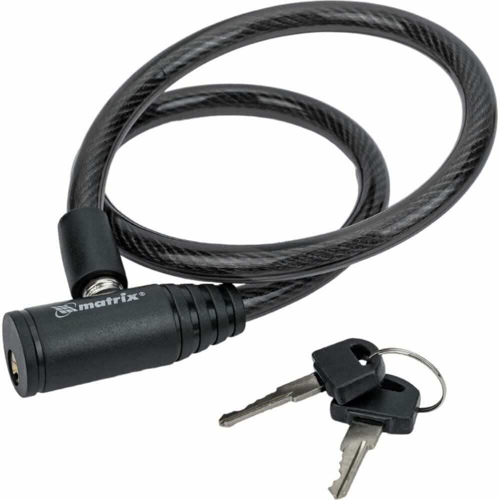 Купить Замок тросовый велосипедный, стальной трос: диаметр 10 мм, длина 650 мм, 2 ключа, MATRIX, 91814