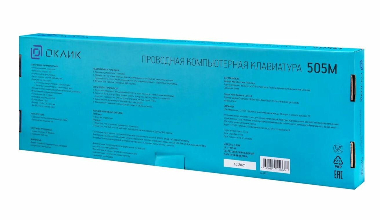 Клавиатура оклик Oklick 505M белый USB slim (1196547)