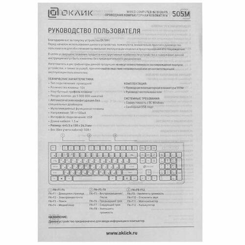 СохранитьКлавиатура проводная Oklick 505M USB белый интересное: