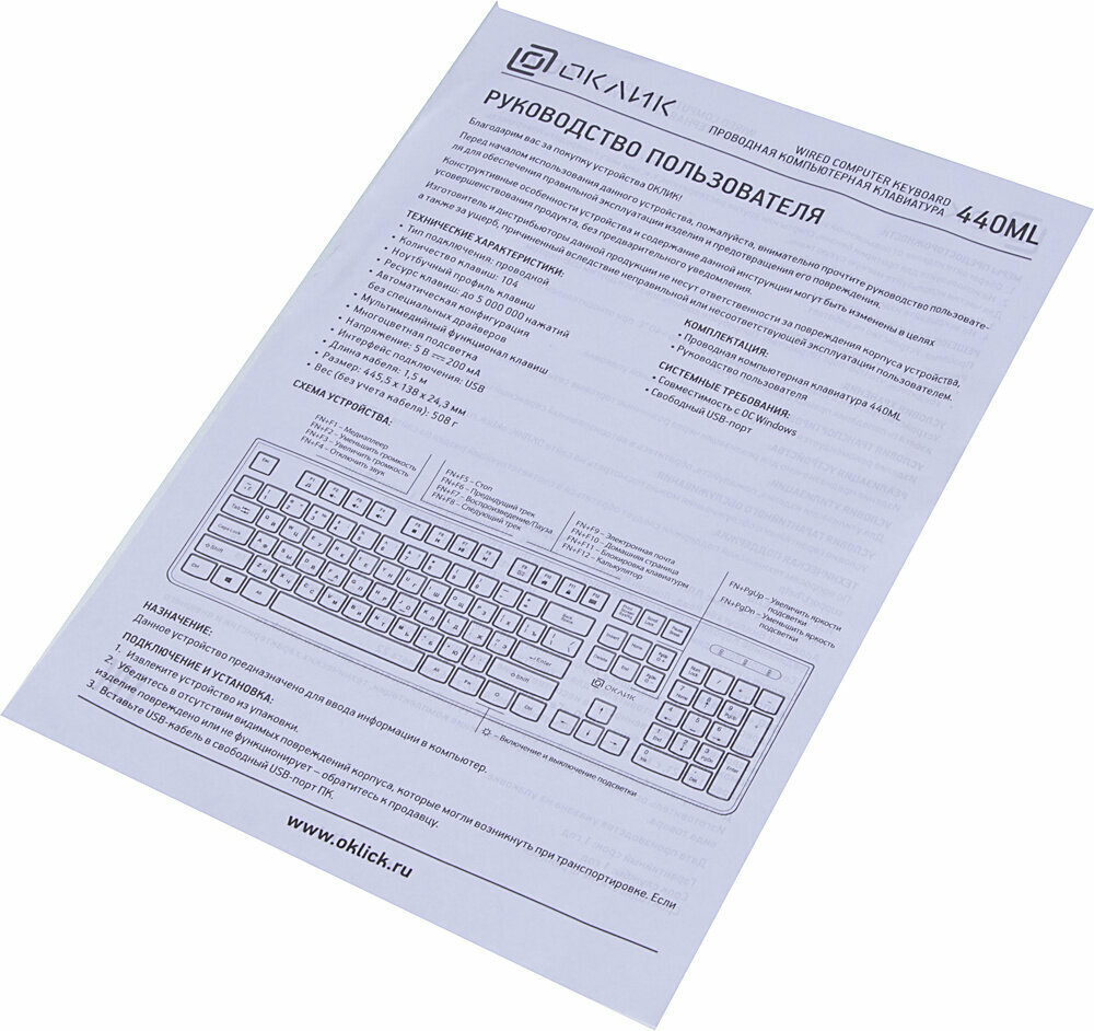 Клавиатура Oklick 440ML, USB, черный тип подключения: проводная, интерфейс: USB