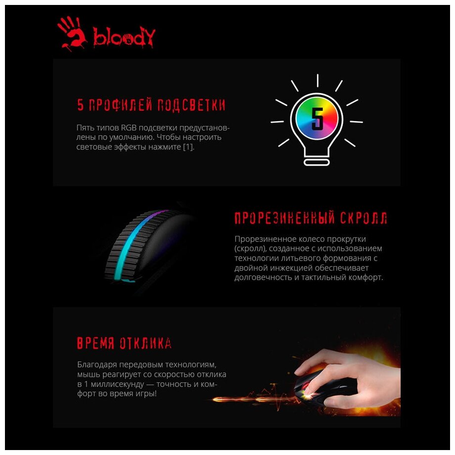 Мышь A4Tech Bloody W60 Max, черный/красный