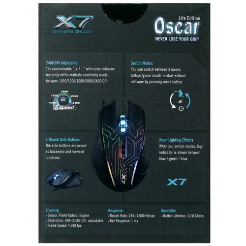 Мышь A4Tech X87 черный оптическая (2400dpi) USB (8but) интересное: