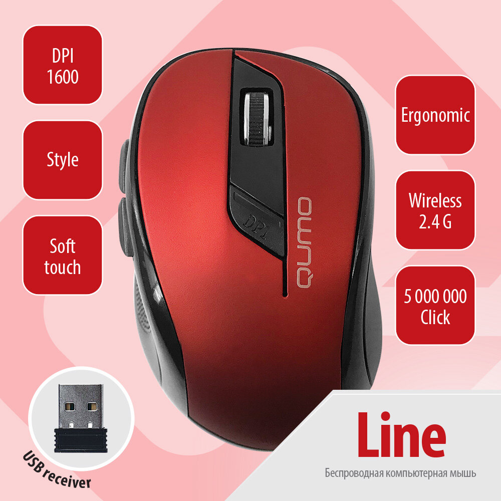 Мышь беспроводная Qumo Office Line красная 2.4G