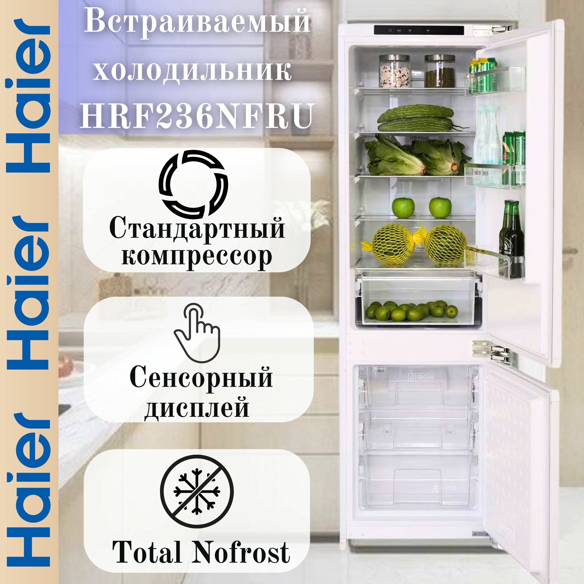 Встраиваемый холодильник Haier HRF236NFRU, белый интересное: