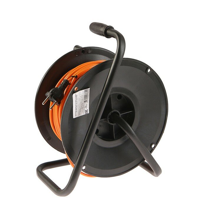 Удлинитель на катушке TUNDRA, 4 розетки, 50 м, 6 А, ПВС 2х0.75 мм2, без з/к, IP20, ГОСТ