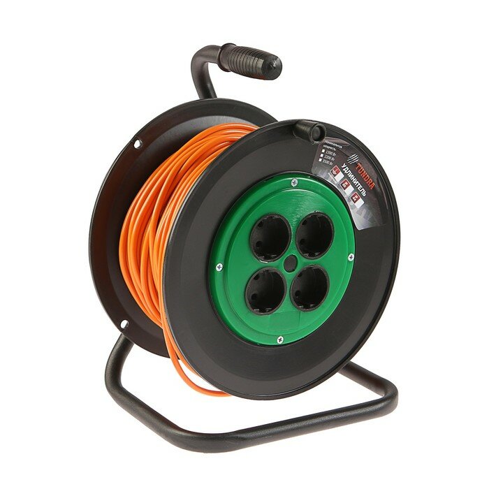 Тундра Удлинитель на катушке TUNDRA, 4 розетки, 50 м, 6 А, ПВС 2х0.75 мм2, без з/к, IP20, интересное: