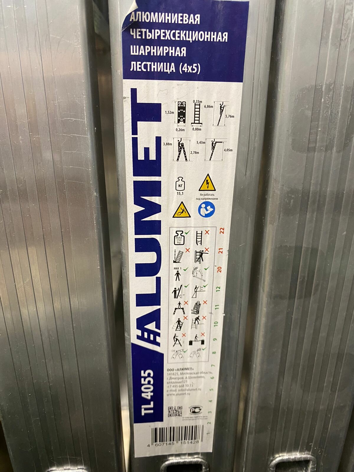 Ниже Вы можете прочитать отзывы на Лестница-трансформер шарнирная Alumet TL4055, алюминиевая, 4 x 5 ступеней, 3,88 - 6,86 м, ознакомится с подробными характеристиками, посмотреть интересные обзоры и фотографии на Лестница-трансформер шарнирная Alumet TL4055, алюминиевая, 4 x 5 ступеней, 3,88 - 6,86 м.