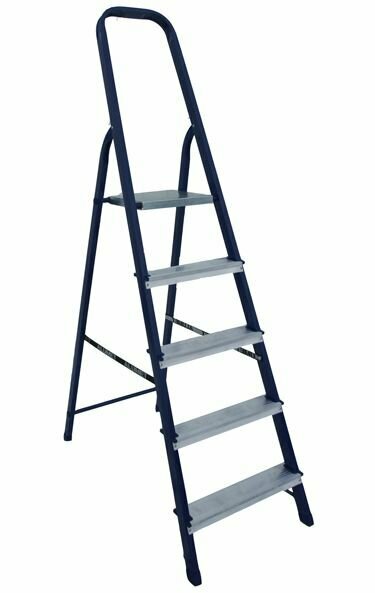 Эта стремянка одна из самых высоких в модельной линейке. Тяжеловата, но это и понятно, потому что стальная. Но оценку снизил не поэтому. А потому что для такой высоты она не очень устойчива, пары строп-затяжек внизу уже недостаточно в отличие от стремянок на 4-5 ступеней, и пошире бы сделать. |