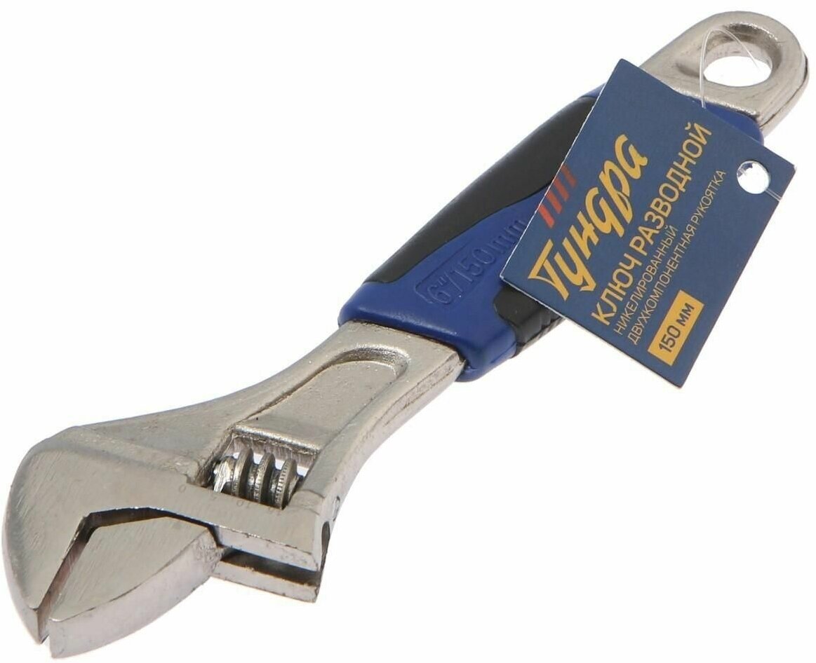 Купить Ключ разводной тундра, никелированный, двухкомпонентная рукоятка, 150 мм