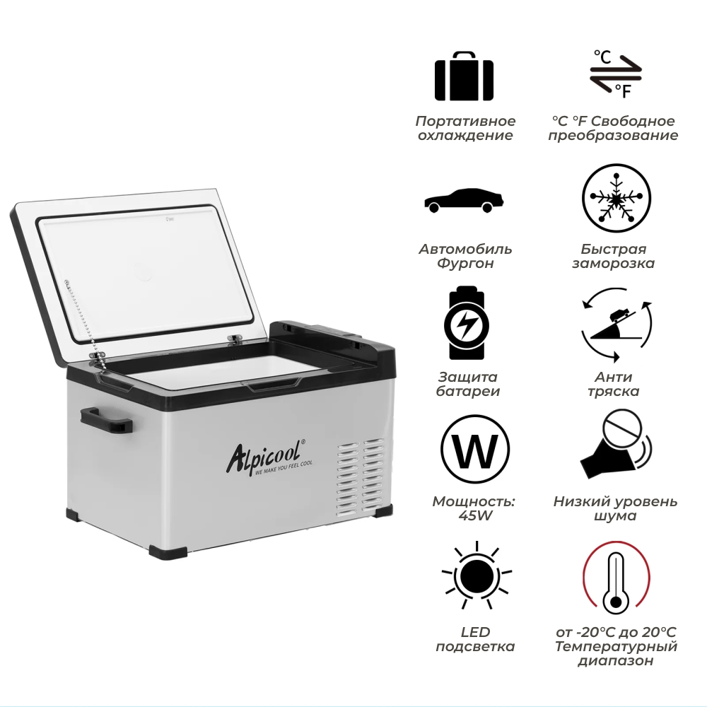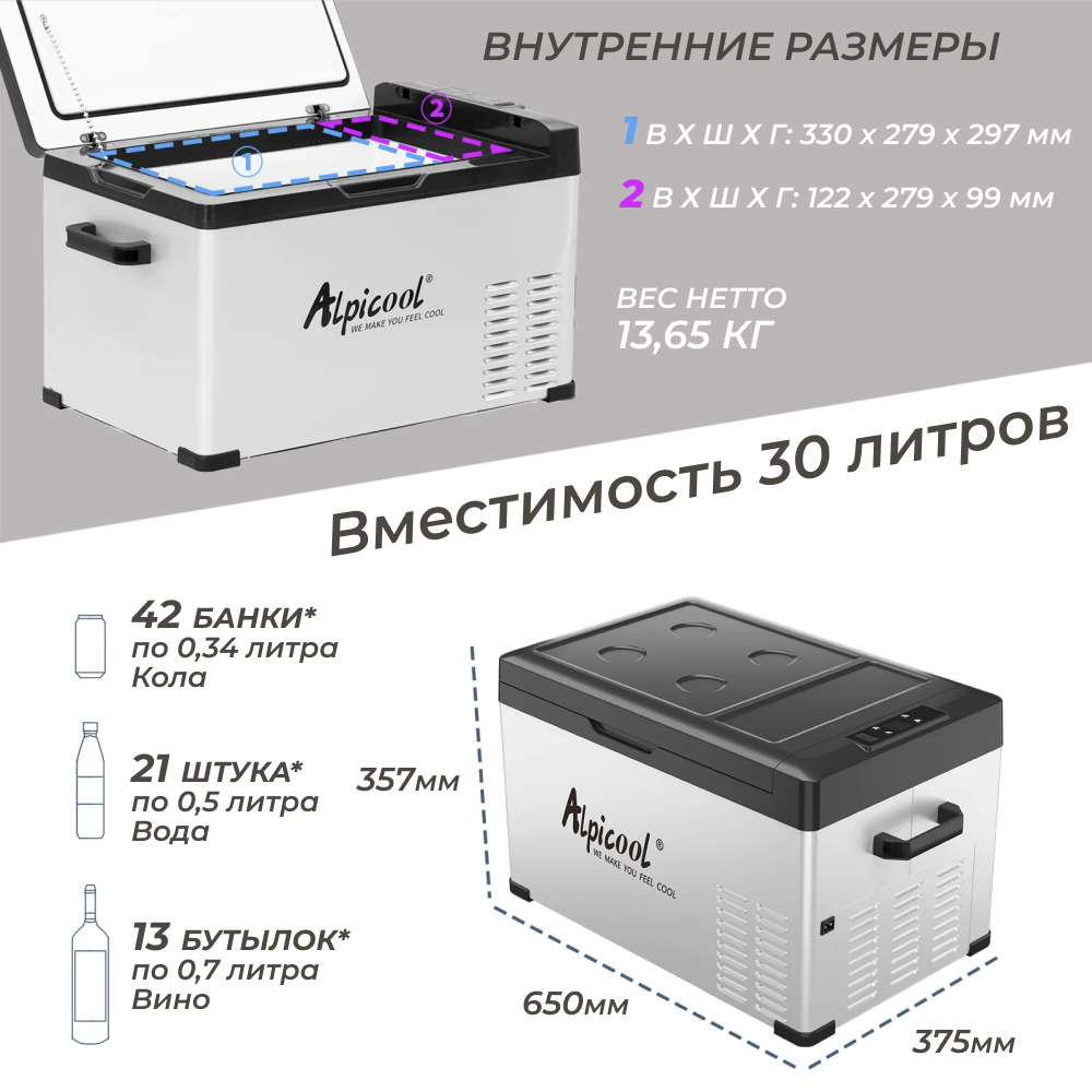 Компрессорный автохолодильник Alpicool C30 (12/24В) интересное: