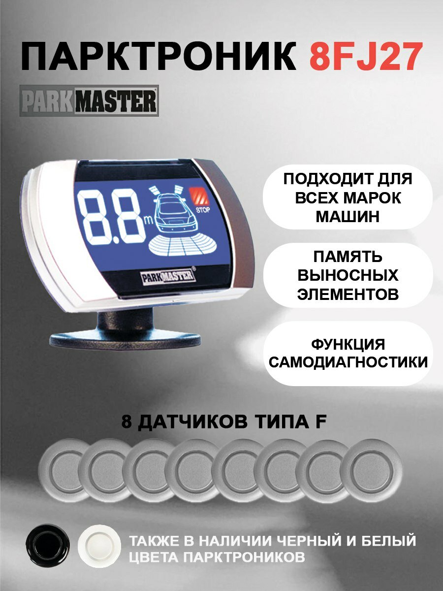 Парковочный Радар Parkmaster 8-Fj-27 Silver, 8 Датчиков ,Передний И Задней Бампер PARKMASTER арт. 8-FJ-27 s