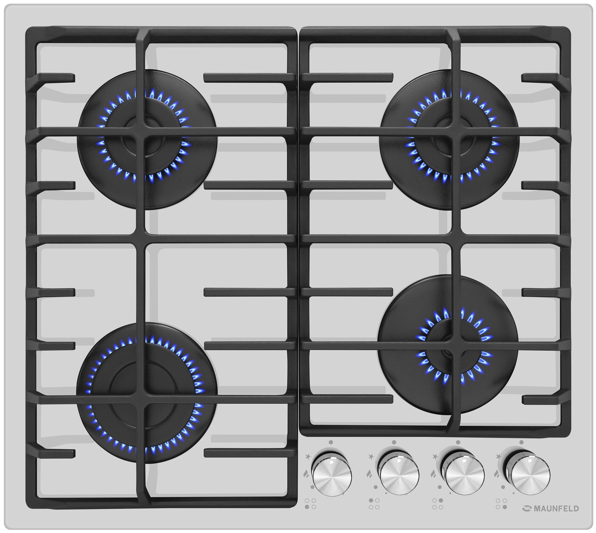 Газовая варочная панель MAUNFELD EGHG.64.6CW/G, закаленное стекло, чугунные решетки, газ-контроль
