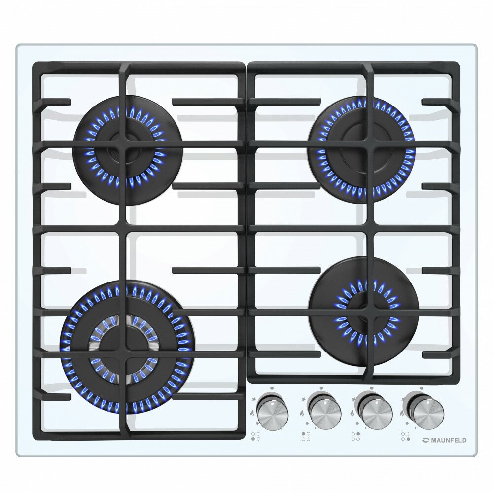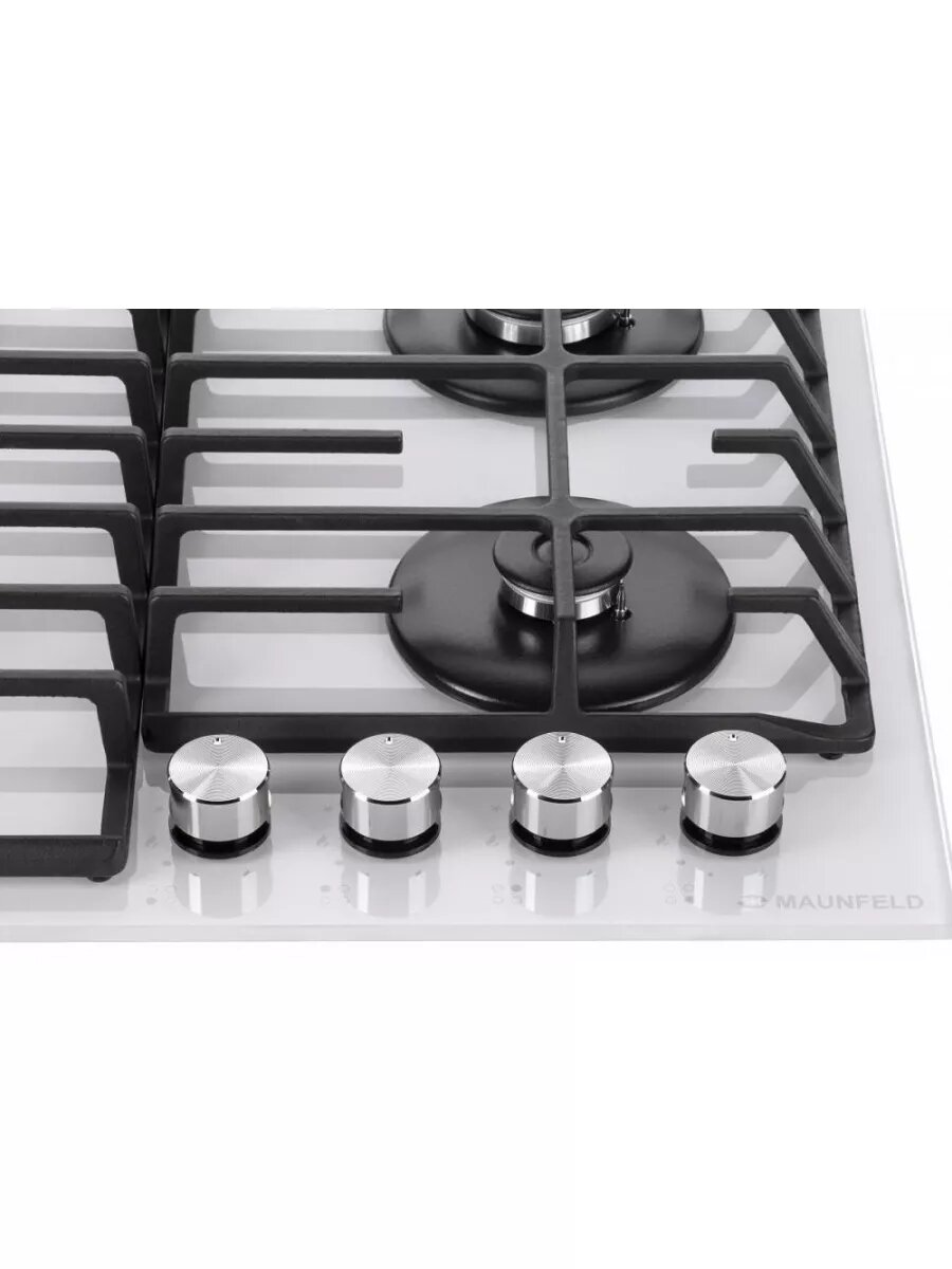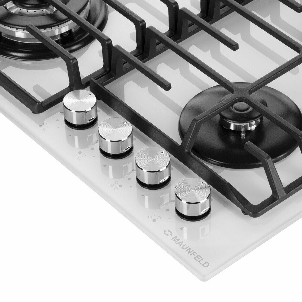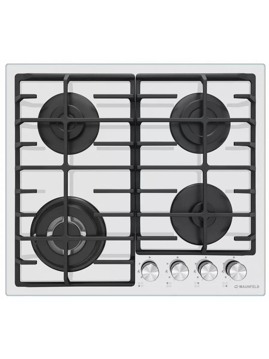Варочная панель газовая встраиваемая Maunfeld / Маунфелд EGHG.64.63CW/G закаленное стекло белый 51х590х515мм 4 конфорки 2 решетки электроподжиг / газконтроль / бытовая техника для кухни