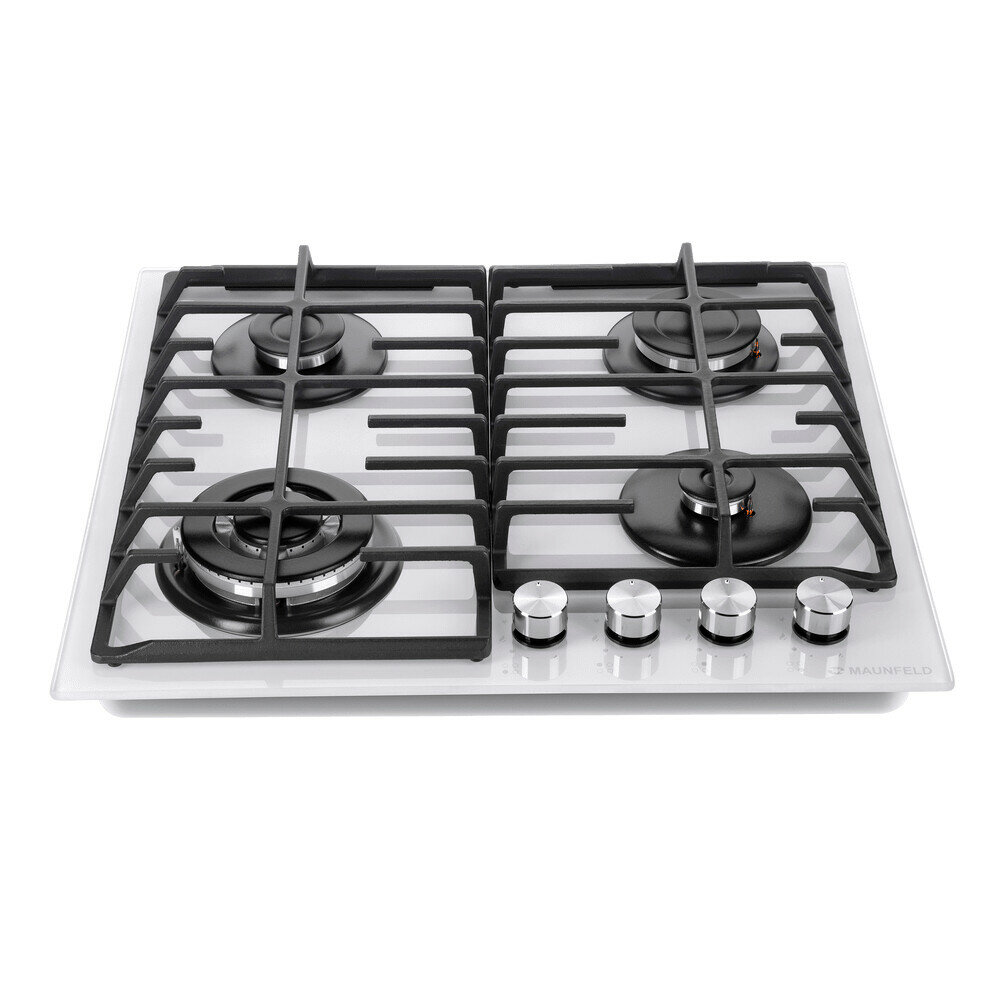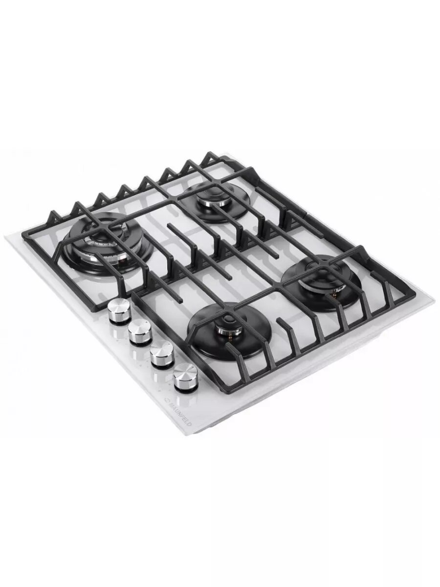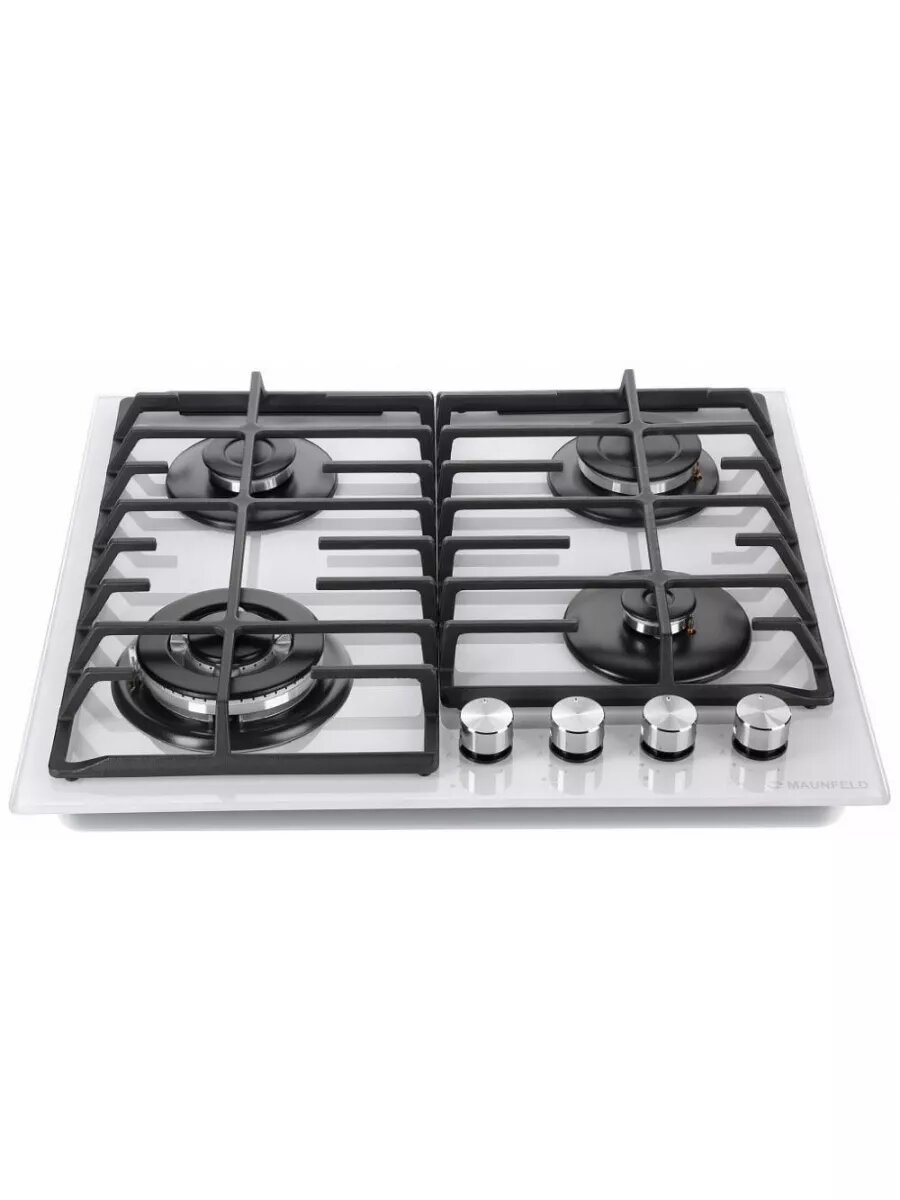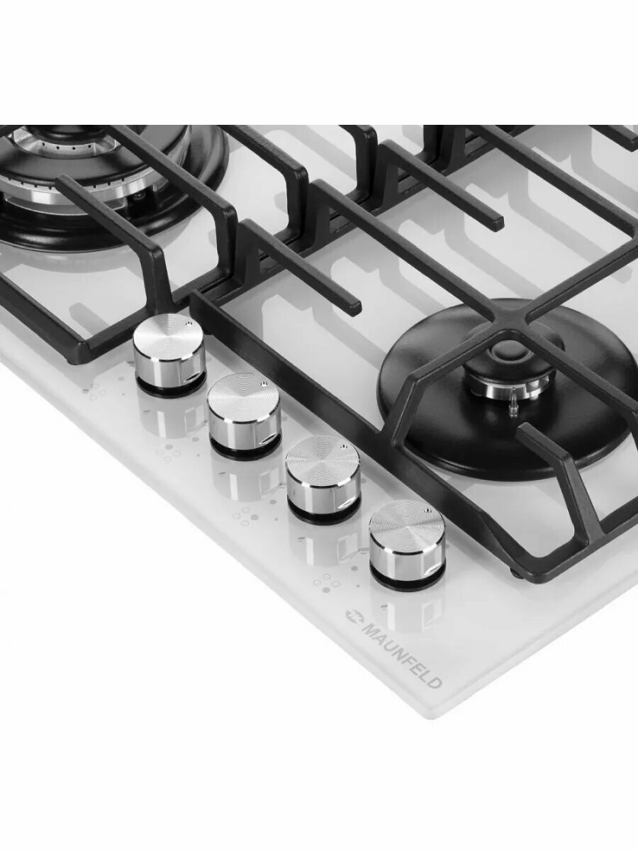 Варочная панель газовая встраиваемая Maunfeld / Маунфелд EGHG.64.63CW/G закаленное стекло белый 51х590х515мм 4 конфорки 2 решетки электроподжиг / газконтроль / бытовая техника для кухни