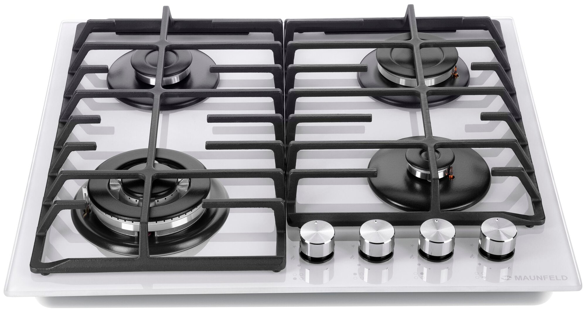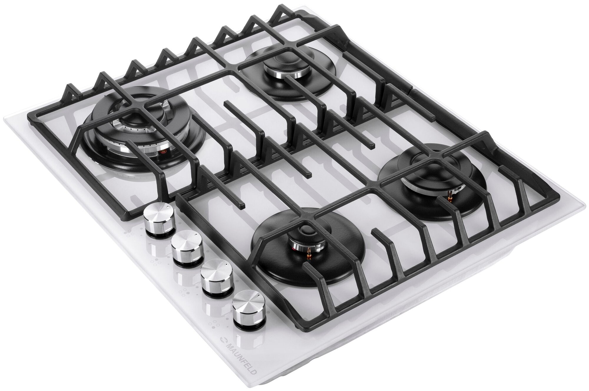 Варочная панель газовая встраиваемая Maunfeld / Маунфелд EGHG.64.63CW/G закаленное стекло белый 51х590х515мм 4 конфорки 2 решетки электроподжиг / газконтроль / бытовая техника для кухни