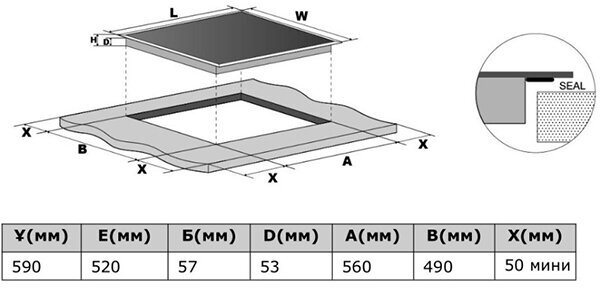| Ширина для встраивания | 56 см |