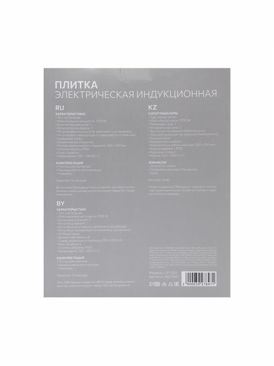 Плитка электрическая Luazon LIP-001, индукционная, 1 конфорка, 2100 Вт, чёрная интересное: