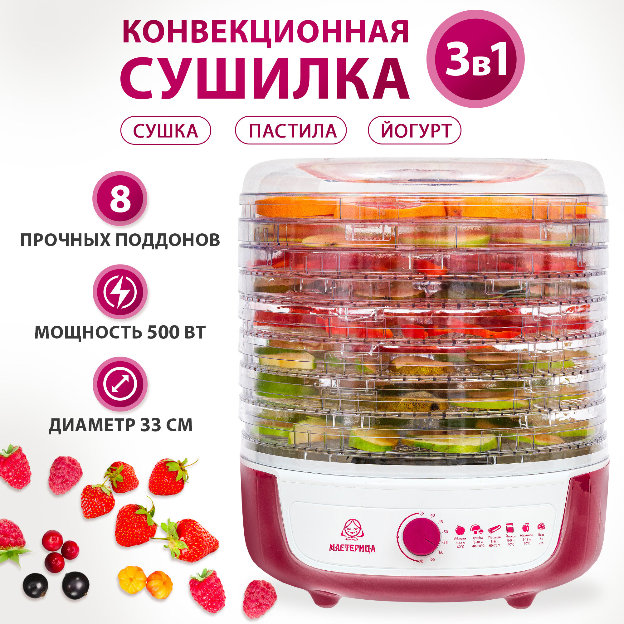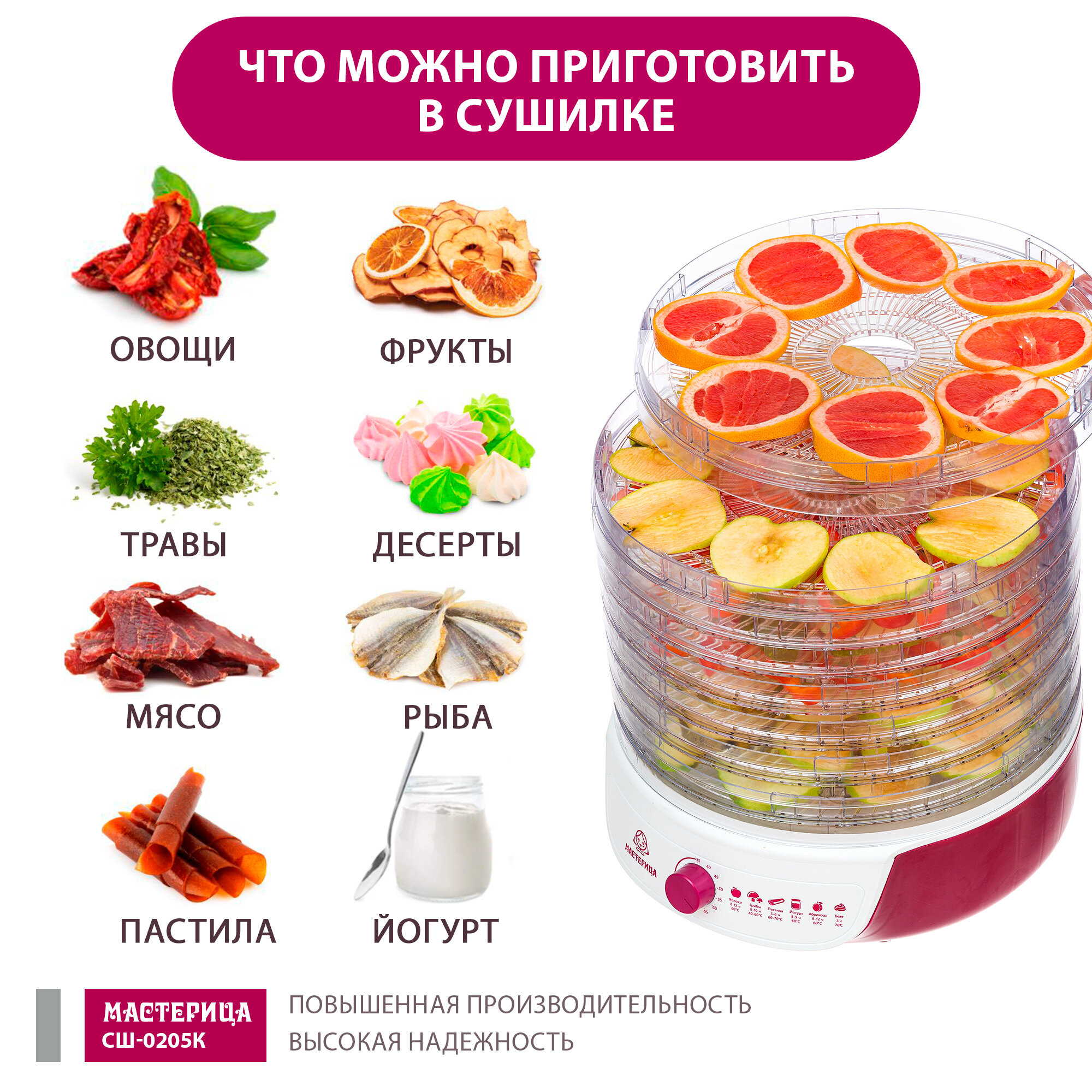 Сушилка для овощей и фруктов Мастерица СШ-0205К с функцией йогуртница