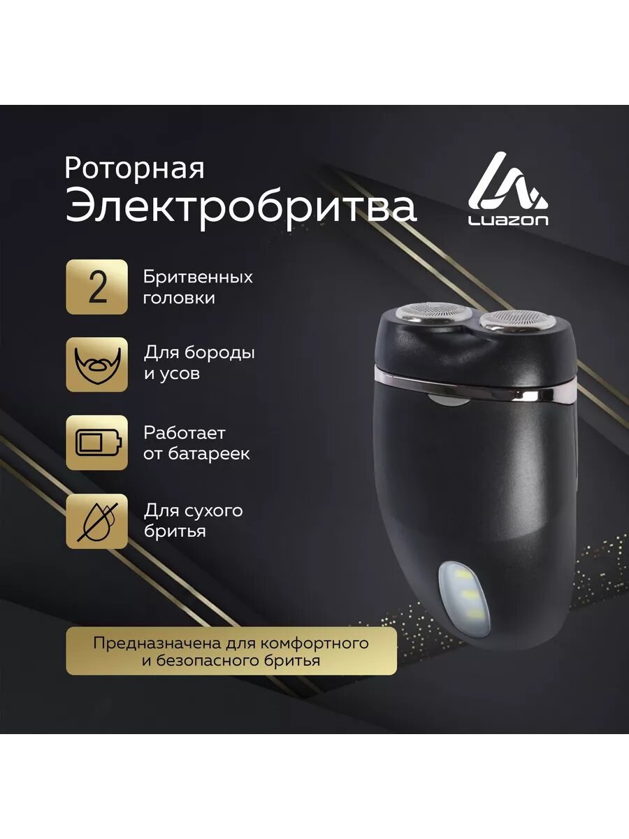 Электробритва LuazON LBR-12, роторная, 2 головки, 3 Вт, от 2хАА (не в комплекте), черная Luazon Home .