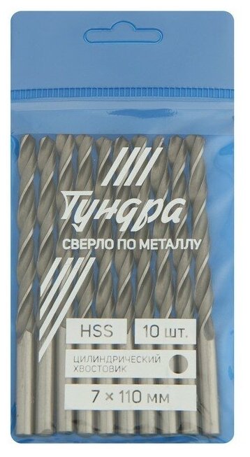 Сверло по металлу тундра, HSS, цилиндрический хвостовик, 7 х 110 мм, 10 шт. интересное: